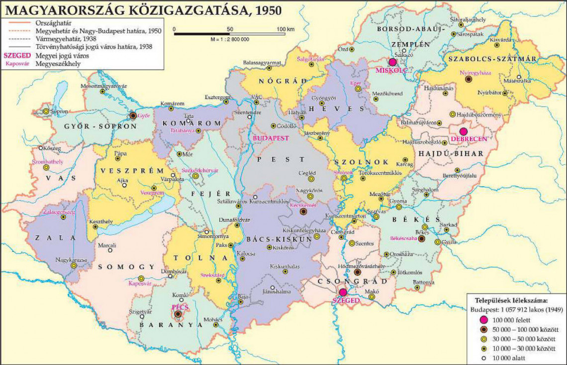 A második tanácstörvény 1954-ben bizonyos értelemben közelített a magyar városigazgatási hagyományokhoz. Kiemelte ugyanis Debrecen, Miskolc, Szeged városokat a megyei közigazgatás alól, és megyei jogú városokká nyilvánította őket. Az 1960-as évek derekától kezdtek megerősödni a másodlagos hatalmi központok, a megyeszékhelyek. Ettől kezdve a fejlesztési eszközöket megyékre bontva osztották szét az országos központokban, a további leosztás a megyék feladata lett. Ennek következtében a megyeszékhelyek kedvező pozícióba kerültek, s a hatvanas években és a nyolcvanas évek elején növekedni kezdtek olyan városok, mint Veszprém, Zalaegerszeg vagy Szekszárd.
