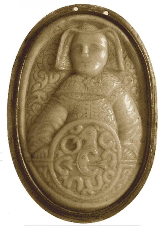 Erzsébet Szilágyi as depicted on an ivory medallion once belonging to the family of the Hungarian novelist Baron Jósika. Collection of the National Museum of the History of Transylvania in Kolozsvár (Cluj-Napoca).