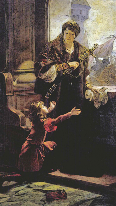 Zsigmond Vajda’s 1890 painting of Erzsébet Szilágyi and the young Mátyás Hunyadi. János Hunyadi, the hero who defeated the Turks, is depicted in the background