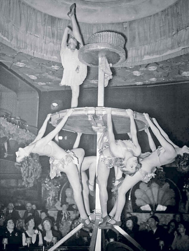 Both entertainment venues changed their programs monthly, unless there was continued demand for the existing program or one of its songs. At the Moulin, the program began at 10pm, with the second show starting at midnight. The Arizona, meanwhile, boasted a new attraction every quarter of an hour. In 1934, they introduced a full program for five o’clock tea – quasi-matinees – on Sundays and holidays for those who were curious about the nightly shows but did not want to stay up late. Their revues featured the latest fashionable dances, such as the beguine and the rumba, as well as other dances now long forgotten but which had been invented solely to be performed in the new shows.