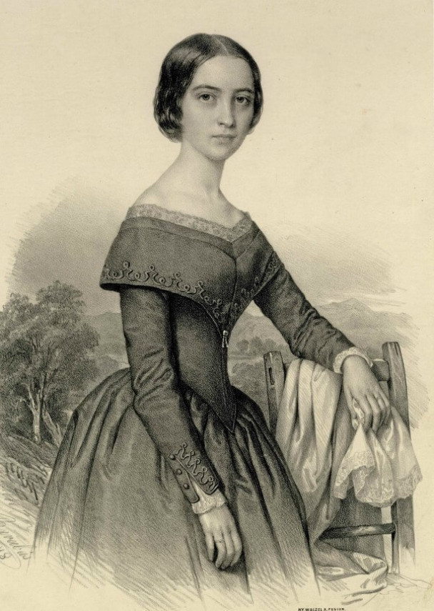 Júlia Szendrei. Based on a painting by Miklós Barabás Lithograph by A. Walzel, Ny.