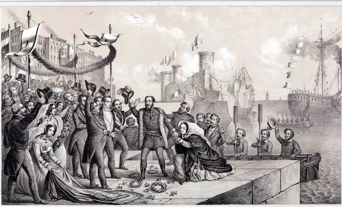Kossuth arrived in England on October 23, 1851, where he enjoyed almost incredible popularity, speaking at rallies attended by tens of thousands of people. When he arrived in the United States in December, he experienced similar crowds on his speaking tours there. While in America, he was received by President Millard Fillmore, and in January 1852, he attended a ceremonial reception in his honor hosted by both houses of Congress. In both England and America, Kossuth promoted the idea of “intervention for non-intervention,” meaning that if the Hungarian War of Independence were to resume, the United Kingdom and United States should act to prevent Russia from providing Austria armed assistance.