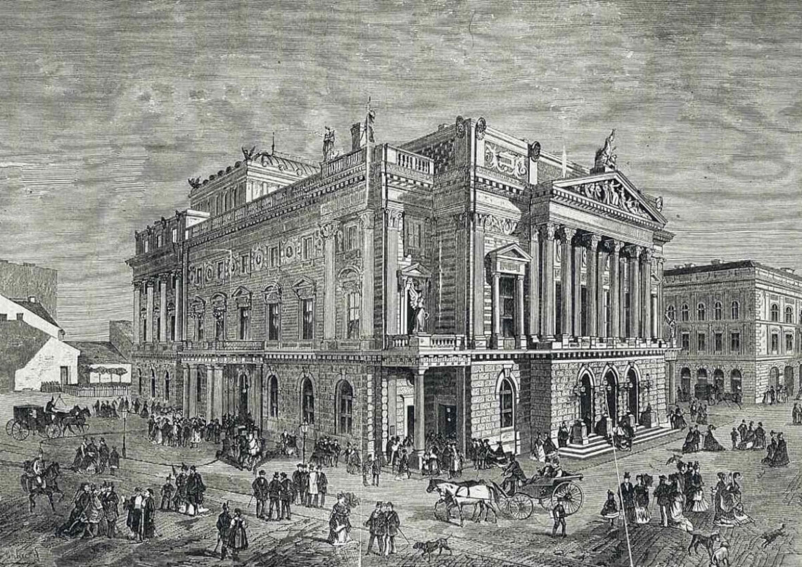 Influenced by Parisian trends, local operettas were soon being written in Vienna by composers such as Franz von Suppé from Dalmatia, Ivan Zajc from Croatia, and – from the 1870s – Johann Strauss the Younger. Theater and music historians regard Suppé’s one-act work The Boarding School [Das Pensionat], which premiered in November 1860 at the Theater an der Wien, to be the first true Viennese operetta. Alongside the Carl-Theater, the Theater an der Wien was the other main venue for this genre in Vienna.